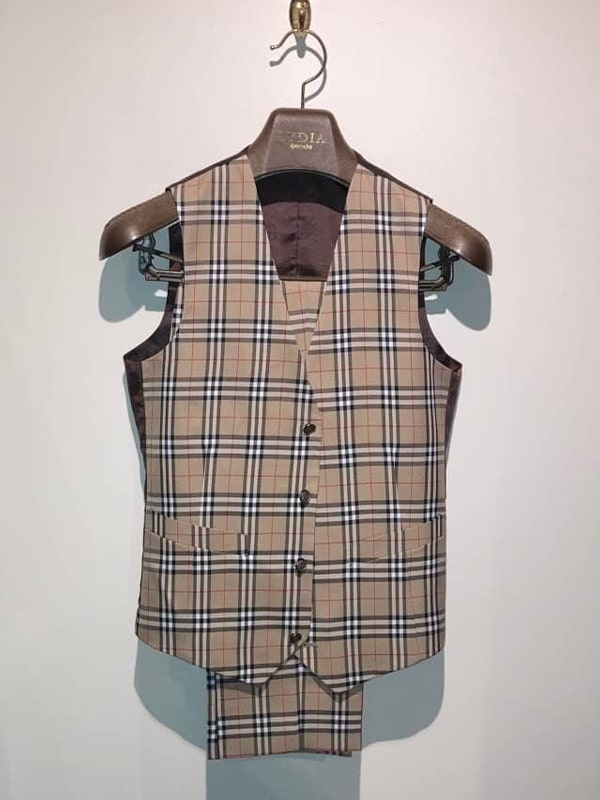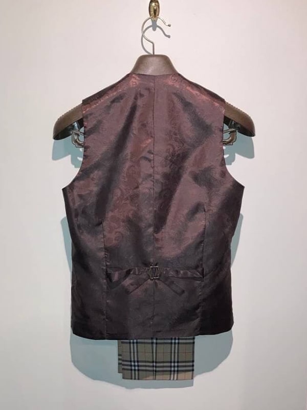 ジャケットには星柄の裏地で遊び心のある雰囲気に、ベストは落ち着きのあるブラウンの裏地となっております。