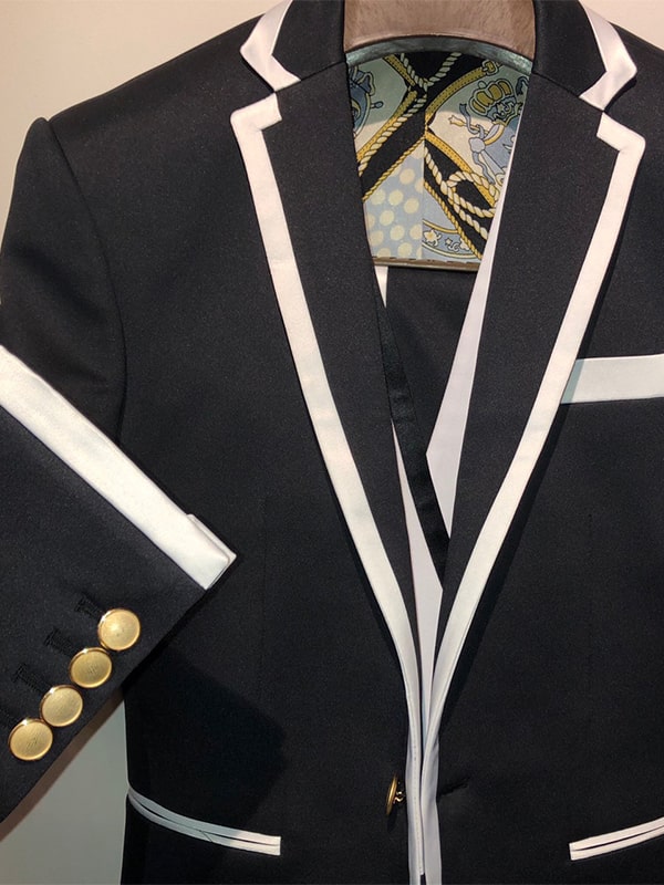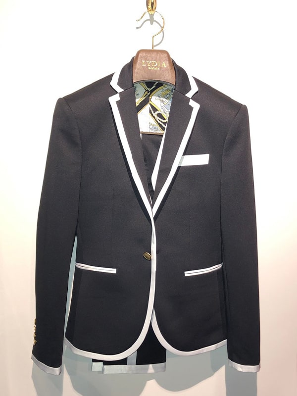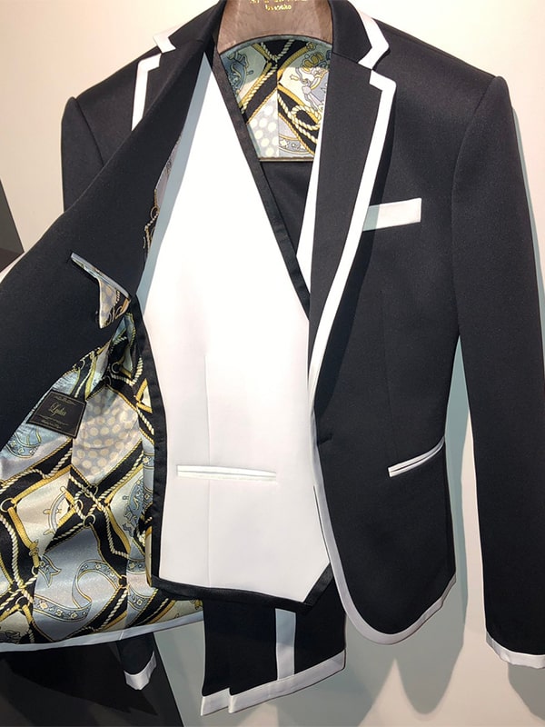 ブラックとホワイトのコントラストがオシャレなフルデザインスーツ。