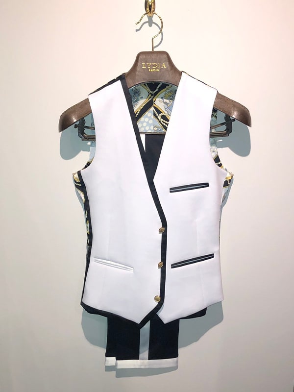・生地ジャケットブラック、ベストホワイト(ストレッチ素材)