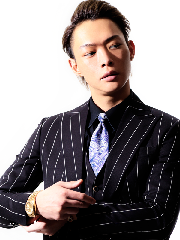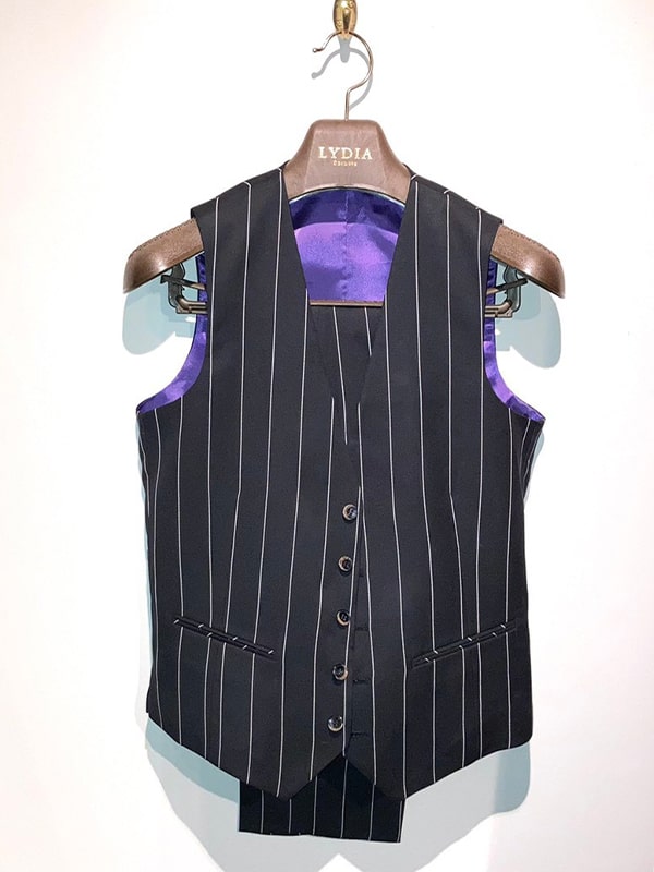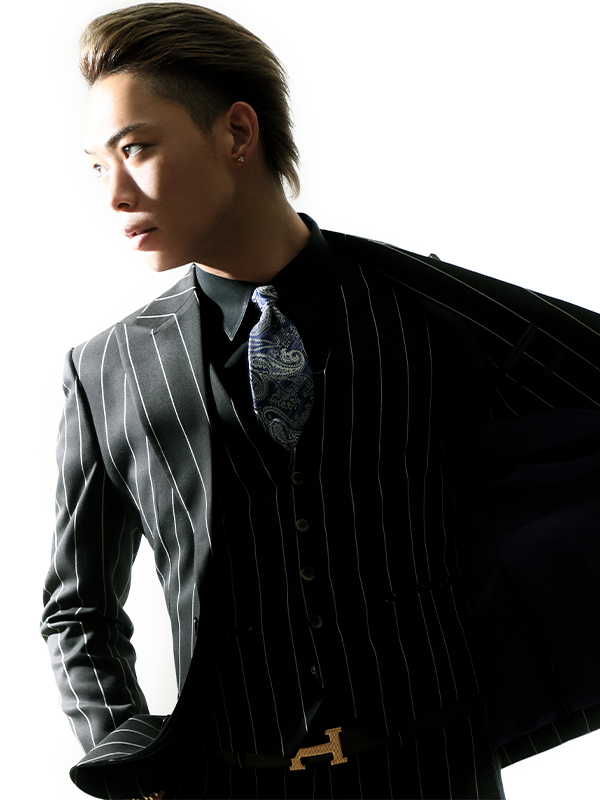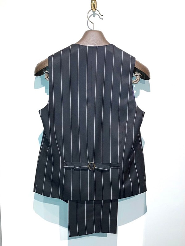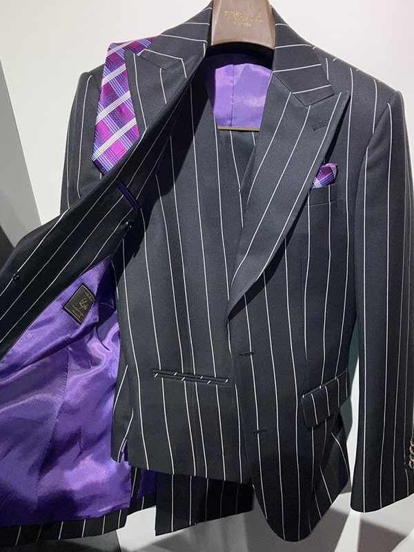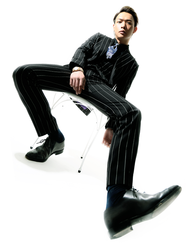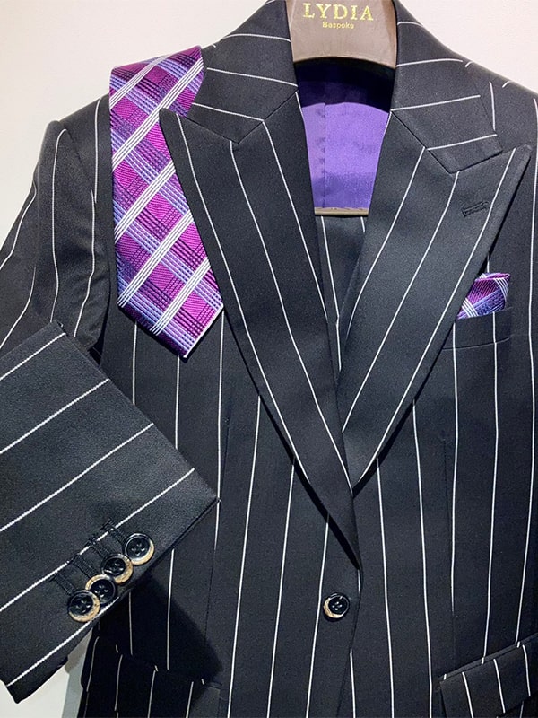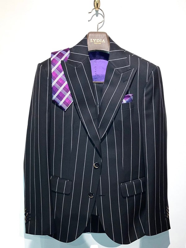 漆黒にくっきりと入った幅広ストライプが男性の渋みを感じさせる一着。