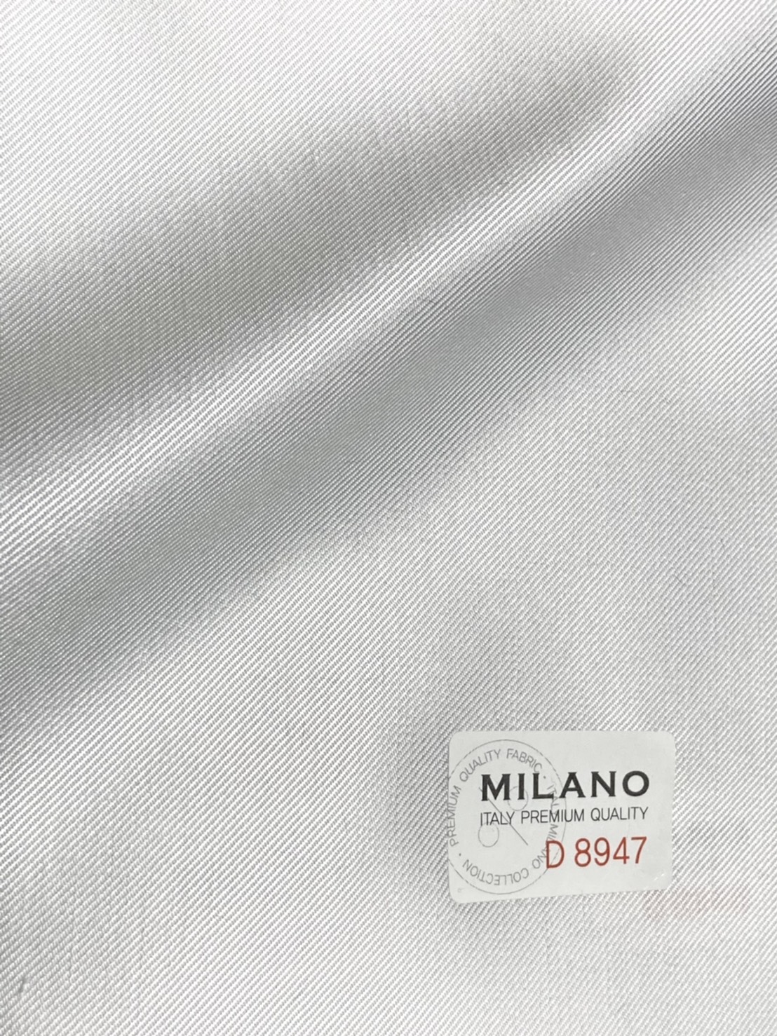 艶ありホワイト生地のラペルとポケット部分を、ブラック生地に切り替えたデザイン。