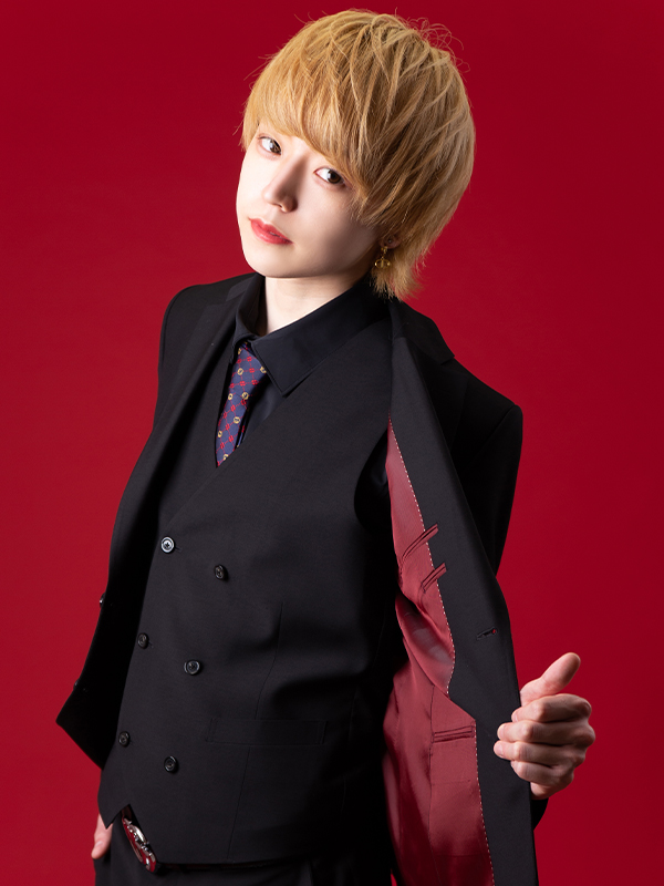ベストはあえてダブルにする事で重厚感のある印象に。