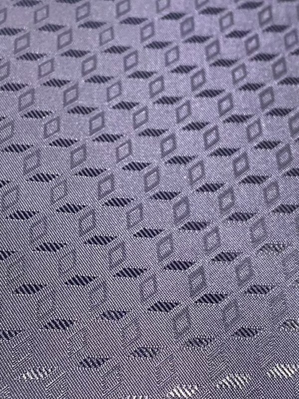 ブラックの洗練された生地にヘビ柄のショールカラーを採用。
