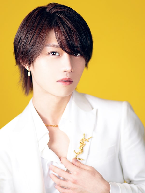 光沢が豊かな印象を与えるホワイトスーツ。