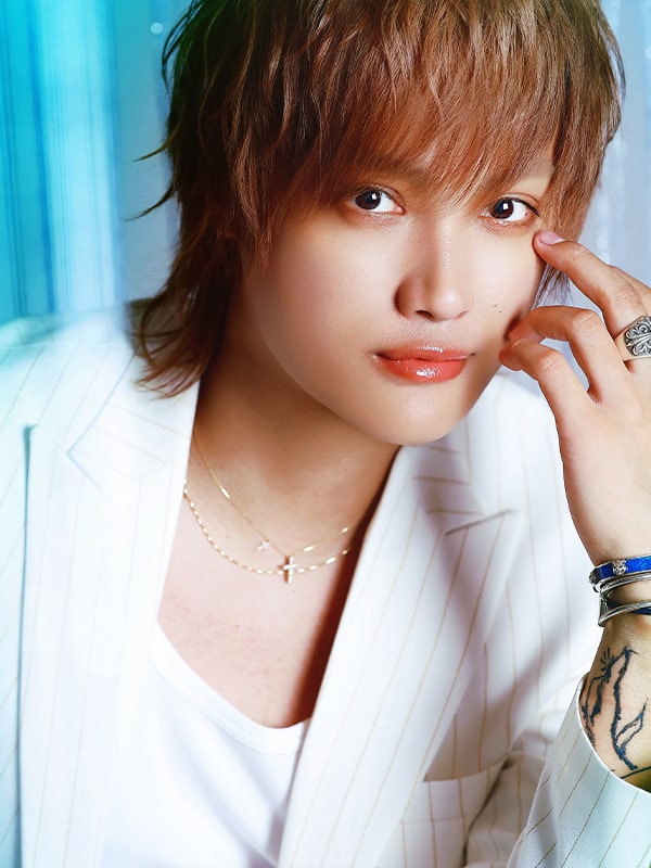 ホワイトの清潔感にゴールドストライプが走る、エレガントで華やかなスーツ。